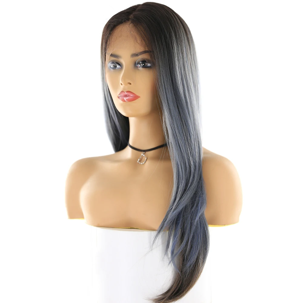 Related Product for 13x4 Lace Front Synthetic Hair Wigs For Black Women Ombre Green Blue Color X-TRESS 26inch Long Stra