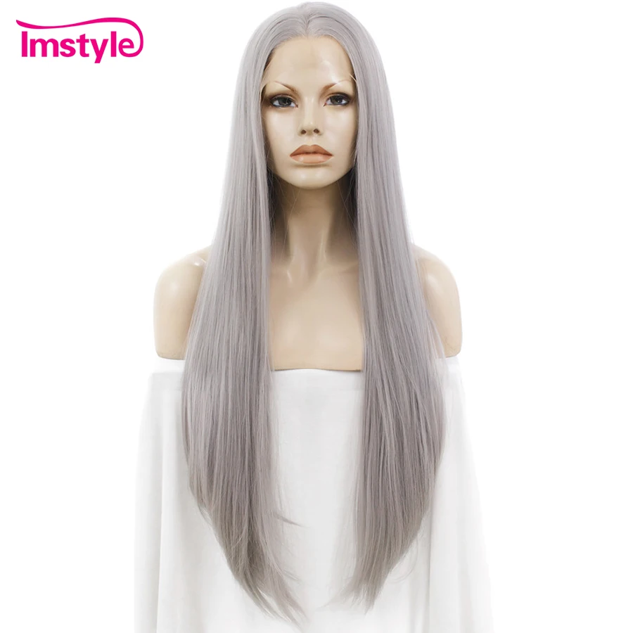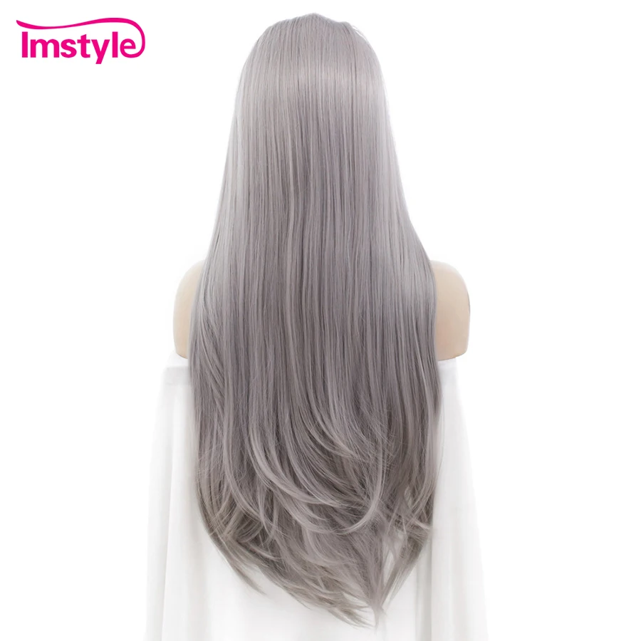 Related Product for Imstyle Lace Front Wig Straight Grey Long Wigs For Women Heat Resistant Fiber Synthetic Lace Wig Gr