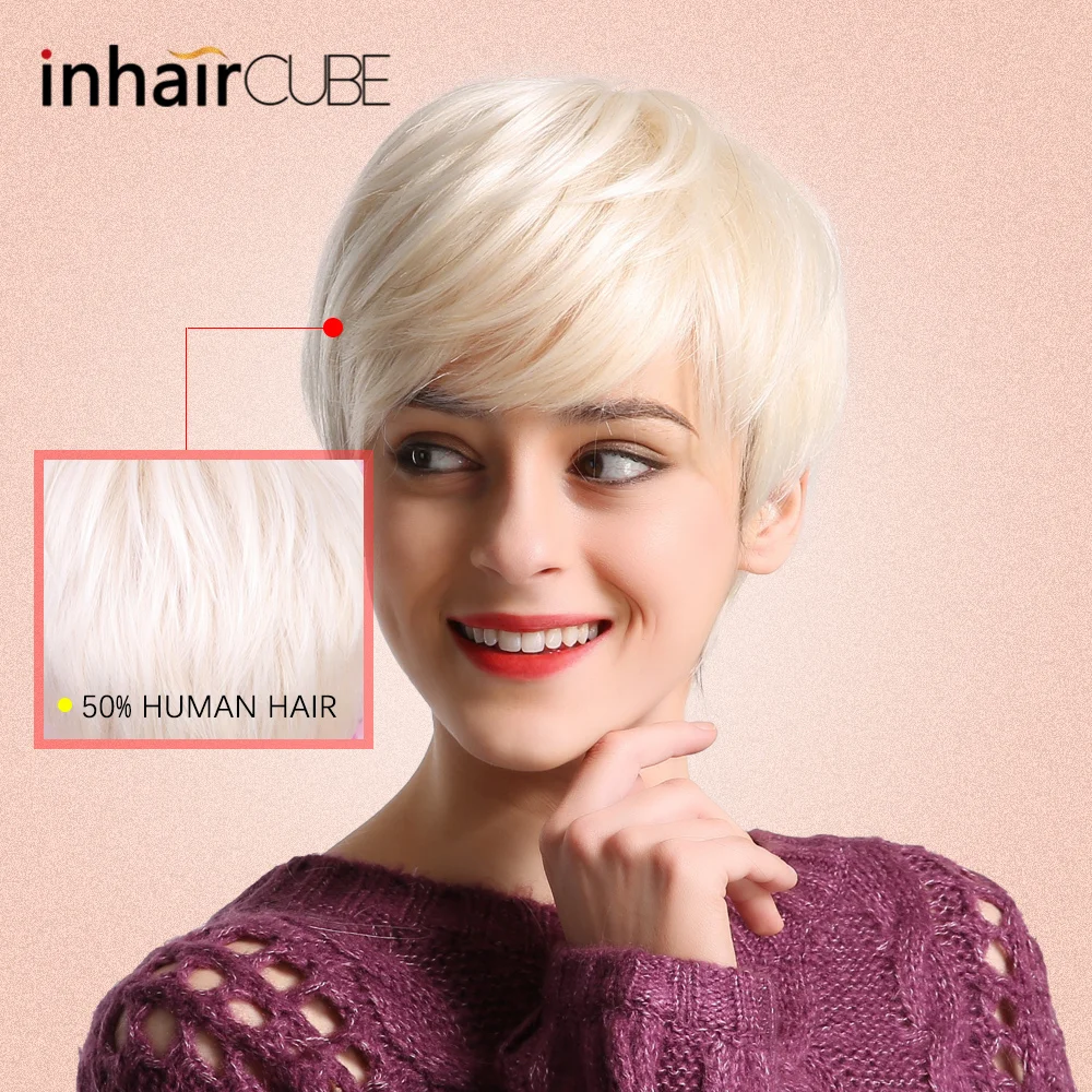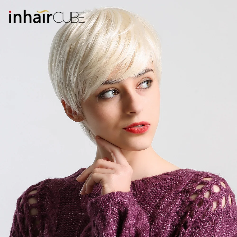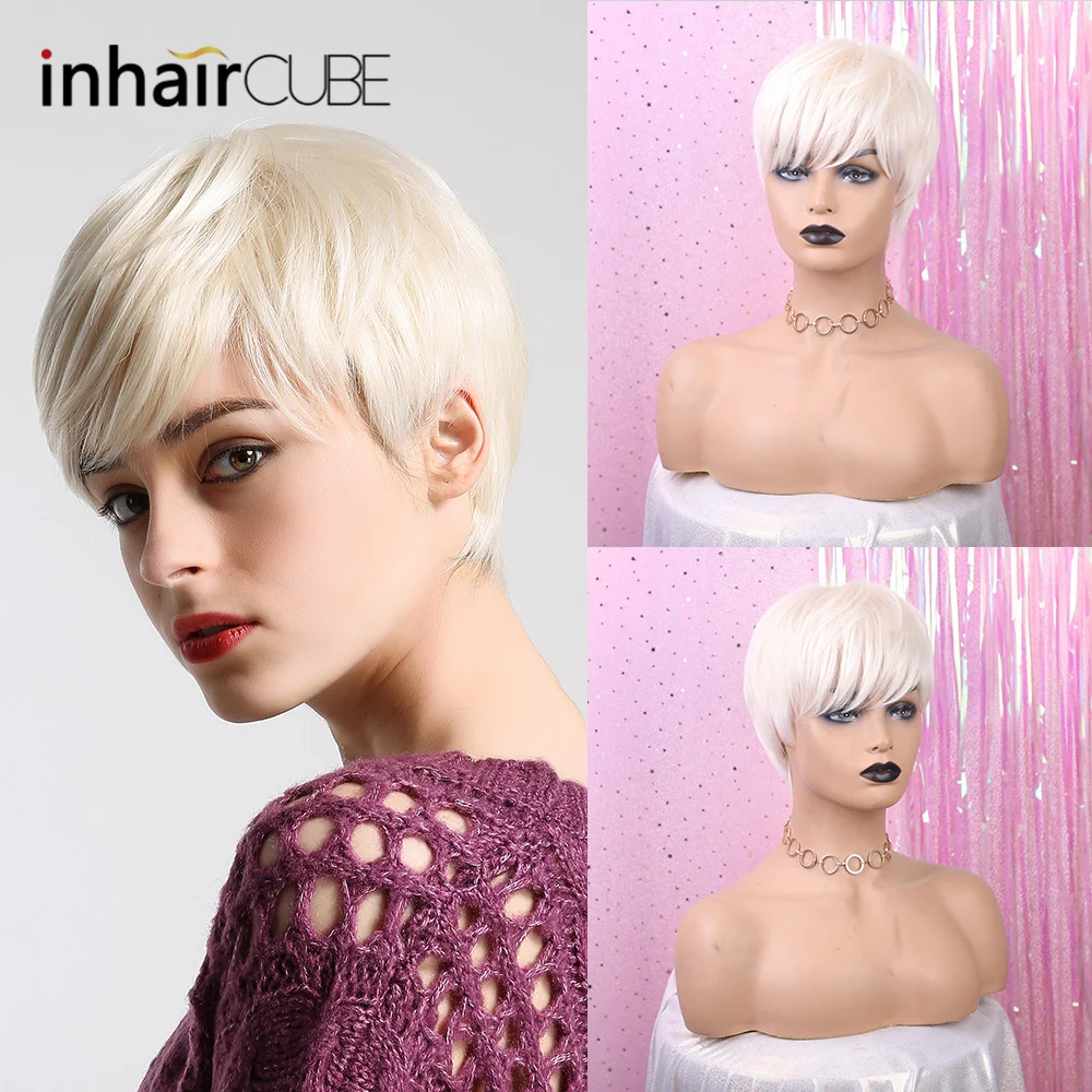 Promo Inhair Cube Short Straight Synthetic Hair Wig 10"with Natural Bangs Pixie Cut with Highlights For Women Fluffy Free ShippingGet 50% OFF, VALID UNTIL TOMORROW