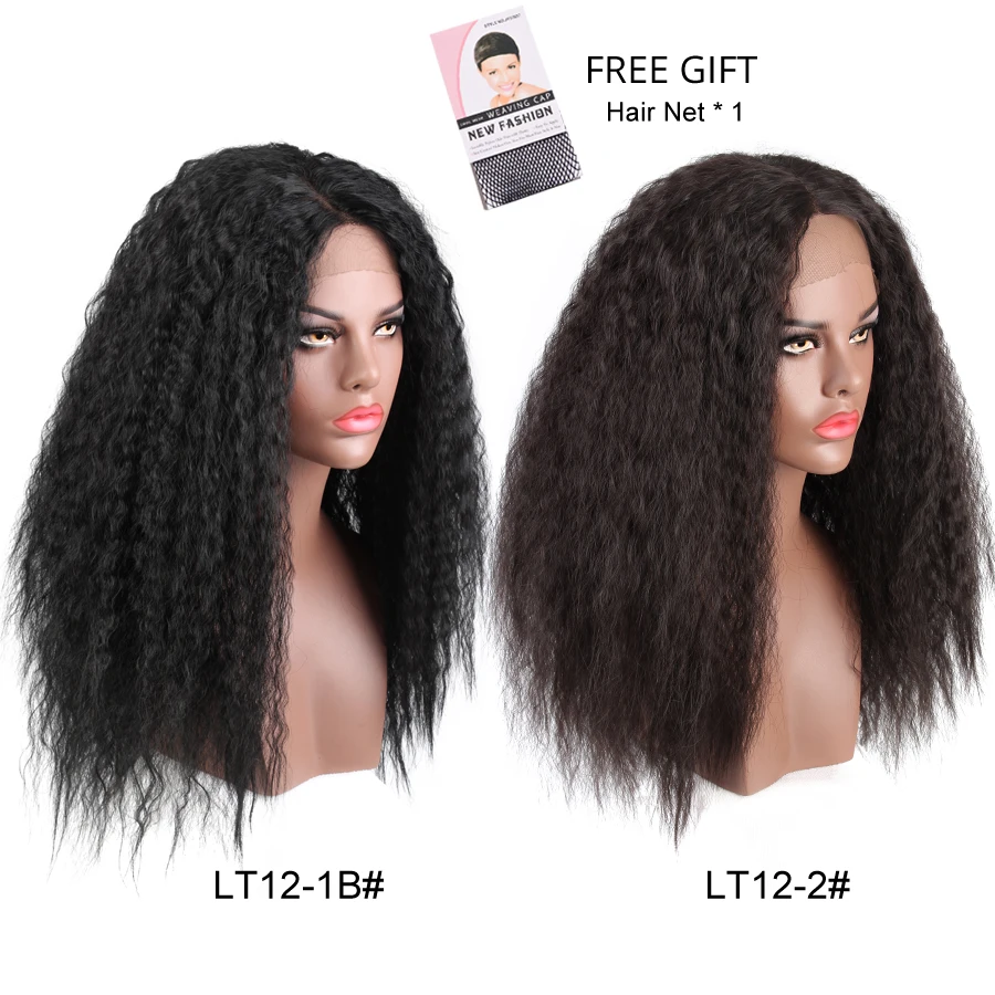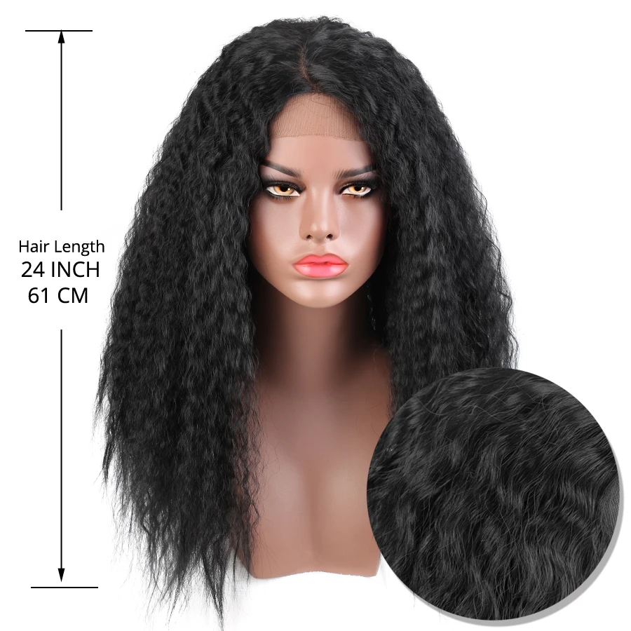 On sale Alileader Natural Long Kinky Straight Wig Afro Puff Yaki Straight Hair Glueless Lace Front Synthetic Hair Wigs for WomenEarn 10% Cash Back, VALID UNTIL TOMORROW