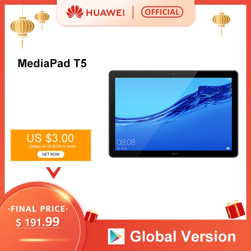 Buy Global Version HUAWEI MediaPad T5 3GB 32GB Tablet PC 10.1 inch Octa Core Dual Speaker 5100 mAh Supp Right Here and Right Now, Because before price is changed you will just pay for US $185.98, not in Reguler Price at US $232.48. Yap! This is I mean you will Save 20%