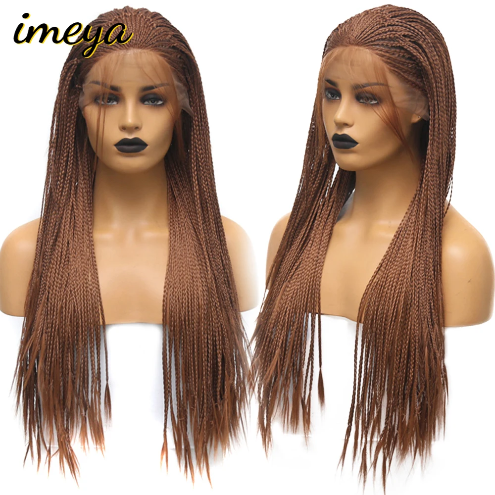 Cheap Offer for Imeya Braided Box Braids Wig Heat Resistant Fiber 24 Inch With Baby Hair Braided Synthetic Lace Fro