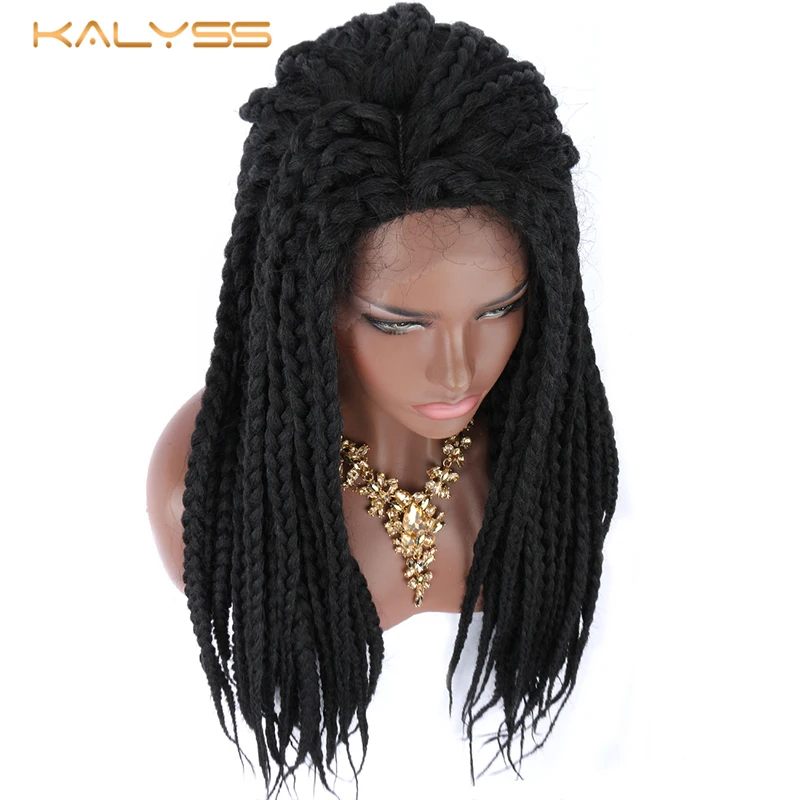 Cheap Kalyss 28 Inches Braided Wigs Synthetic Lace Front Wig for Black Women Baby Hair Box Braid Wig Faux Locs Braid Wig Women’s WigEarn 19% Cash Back, VALID UNTIL TOMORROW