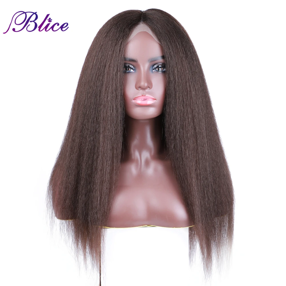 Special Offer of Blice Synthetic Hair Extensions Kinky Straight Wig 4*4 Lace Closure Wigs 130% Density Heat Resistan