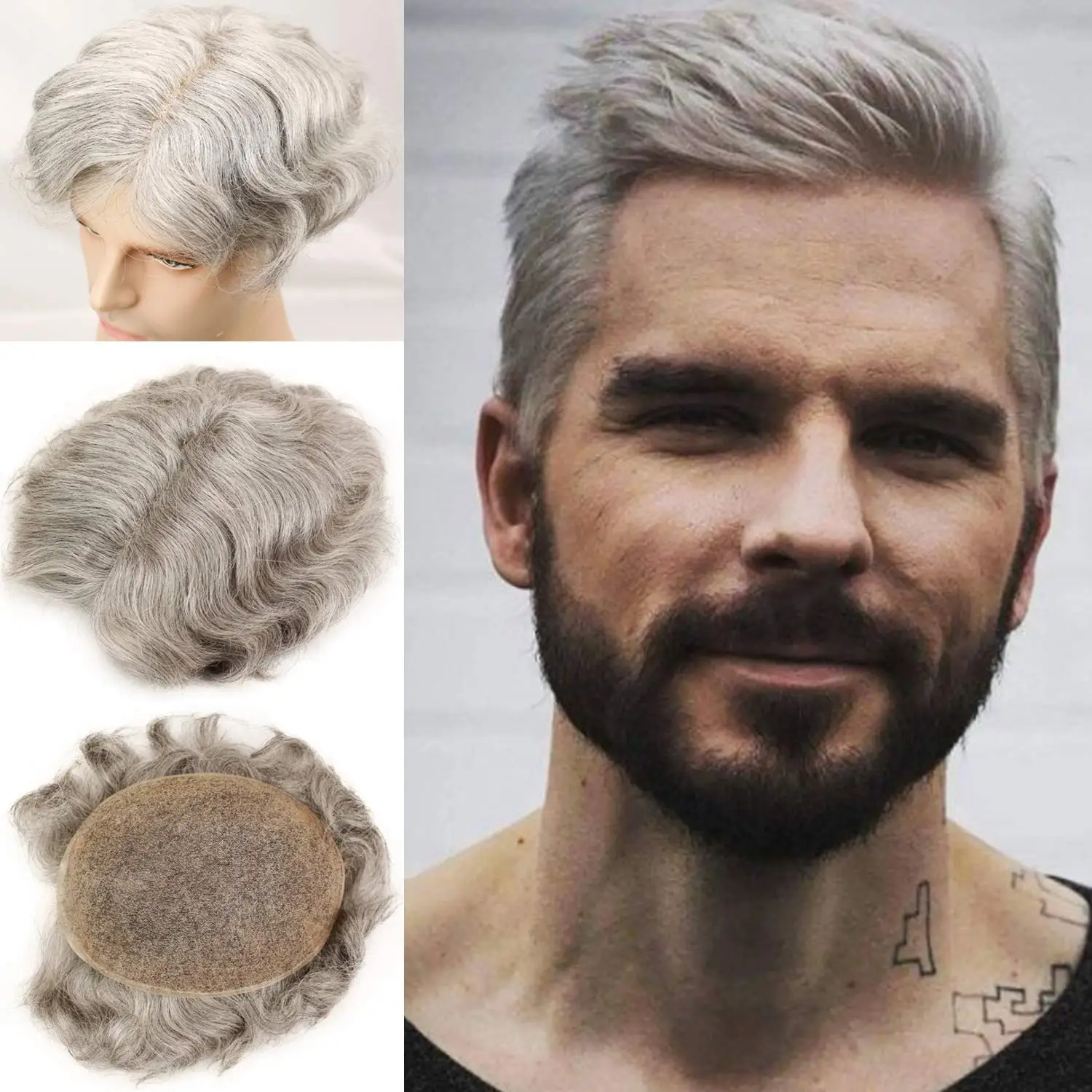 0 Response to "Deals Chance of Swiss Full Lace Men's Toupee 1B Black Color Real Human Hair Mixed 80% Grey Synthetic Hair Replaceme"
