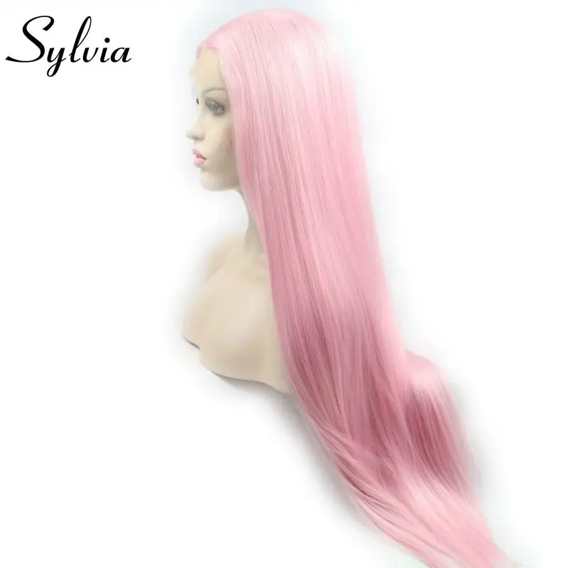 Related Product for Sylvia Long Silky Straight Wig Baby Pink Synthetic Lace Front Wigs Heat Resistant Fiber Soft Hair F