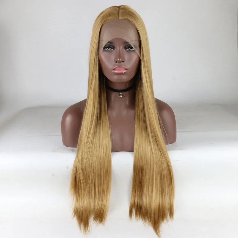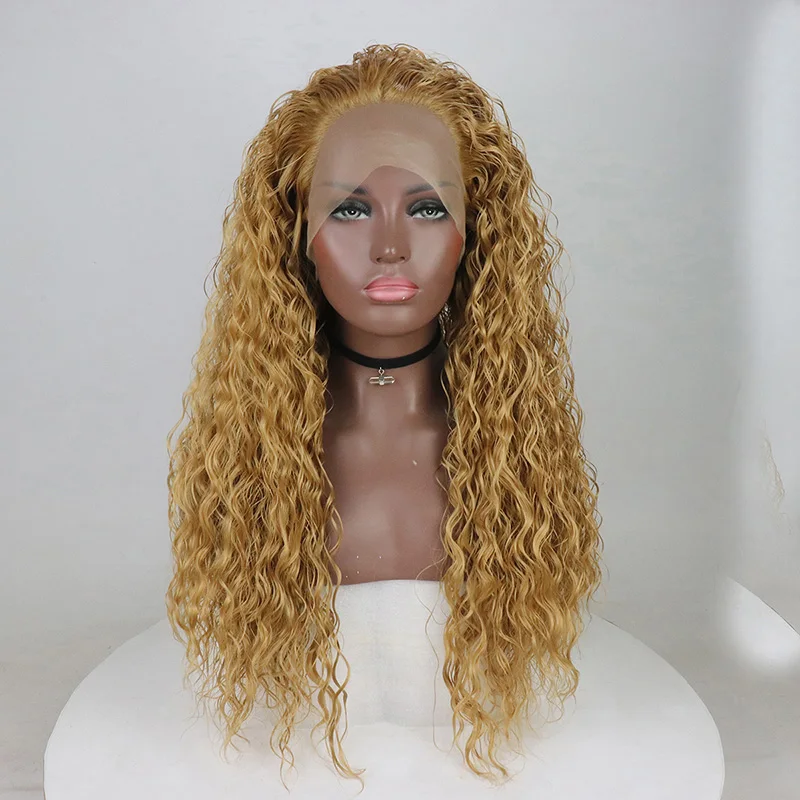 Related Product for Synthetic Lace Front Wig Gold Yellow Color Straight Wavy Cyrly Heat Resistant Fiber Hair Middle Par