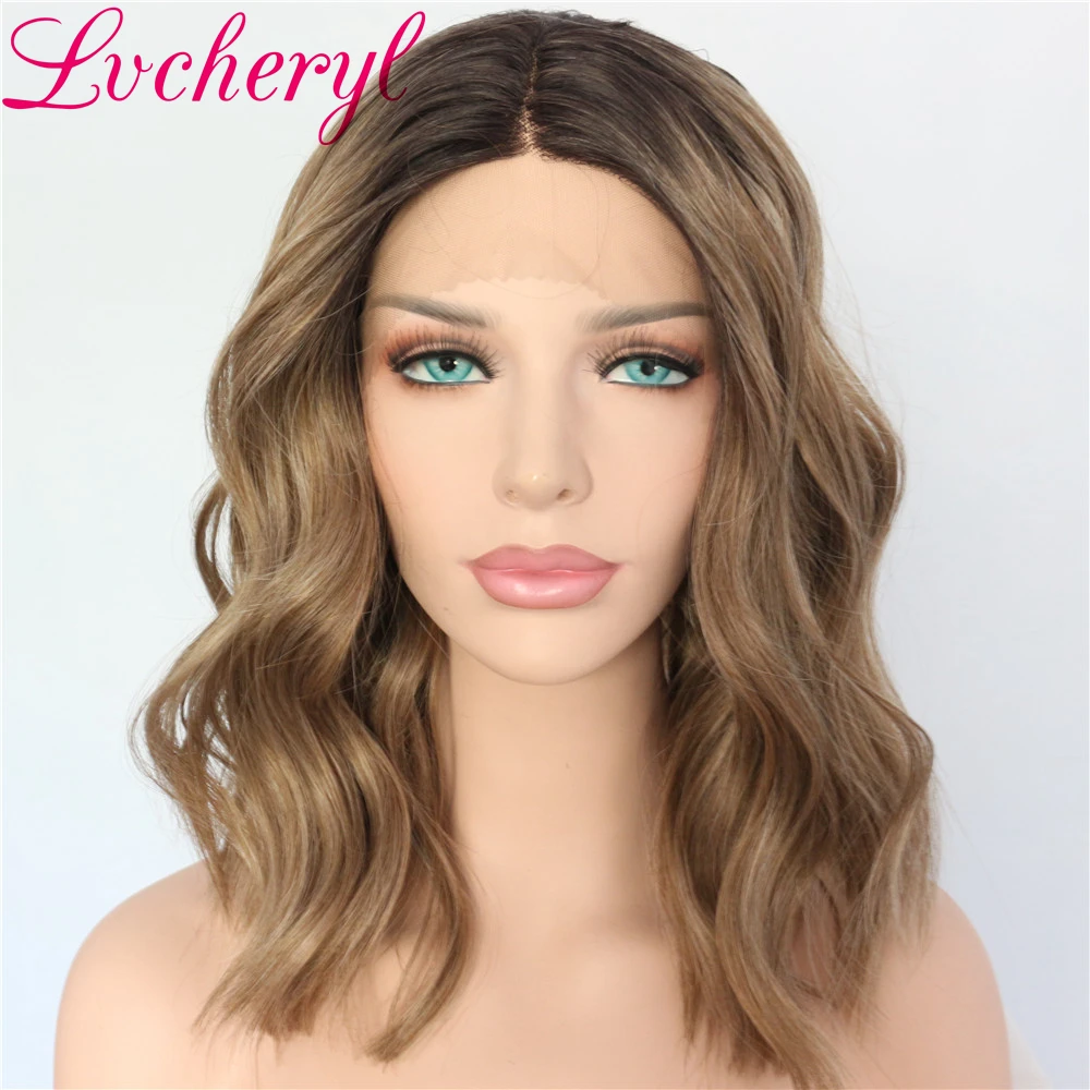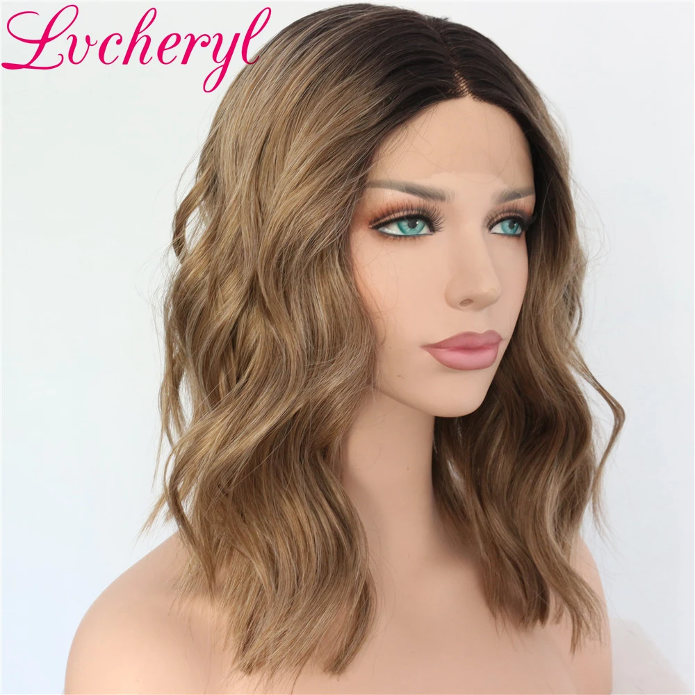 Purchase Lvcheryl New Dark Roots Ombre Brown Hair Hand Tied Short Wavy Heat Resistant Glueless Synthetic Lace Front wigs for WomenGet 30% OFF, VALID UNTIL TOMORROW