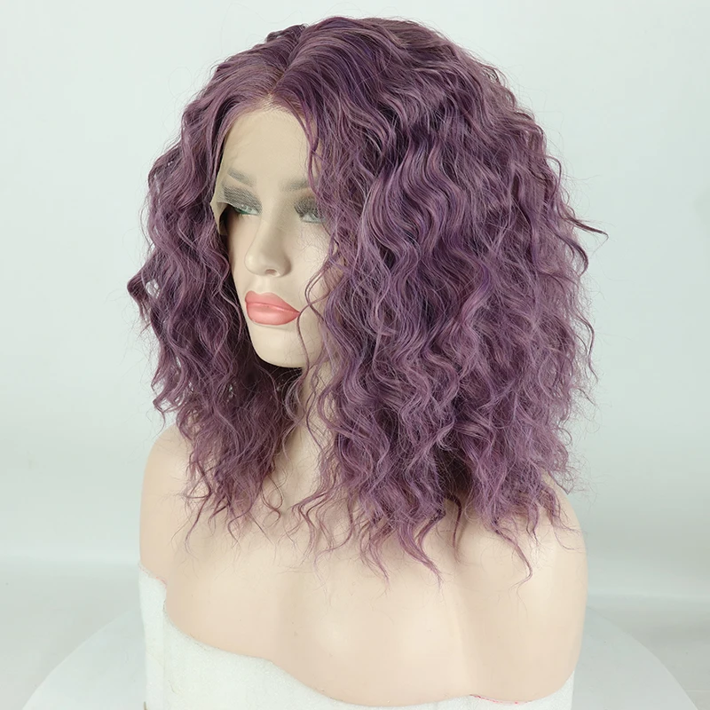 0 Response to "Good Chance of Fantasy Beauty Short Curly Heat Resistant Wigs Purple Hair Glueless Synthetic Lace Front Wig For Wo"