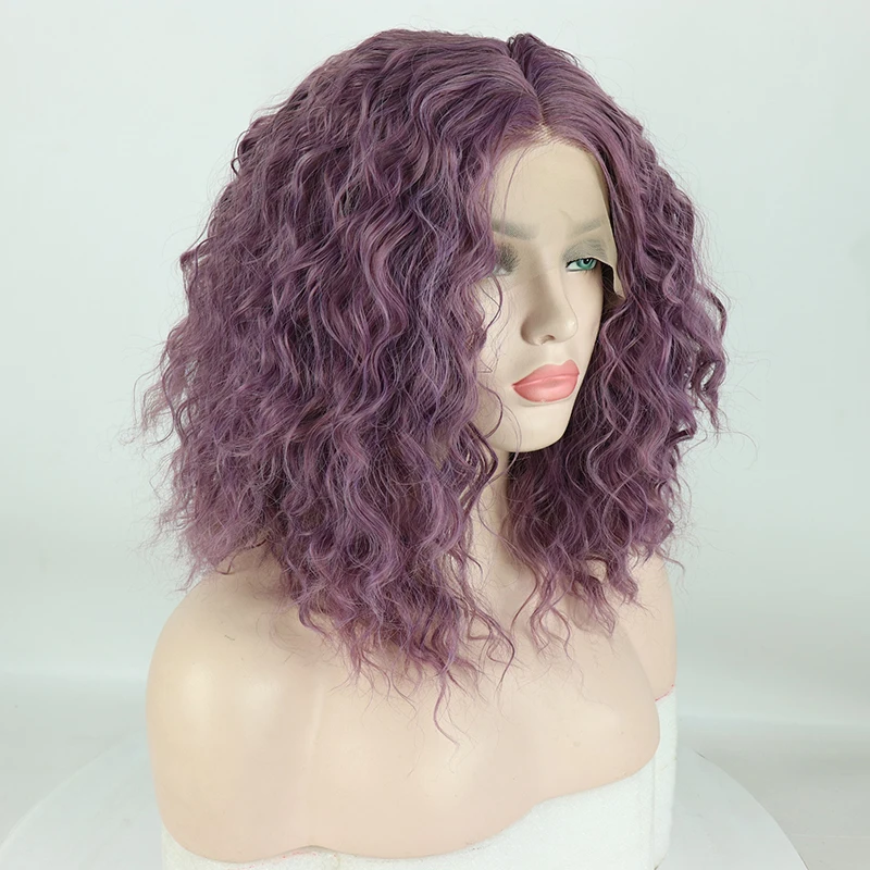 Related Product for Fantasy Beauty Short Curly Heat Resistant Wigs Purple Hair Glueless Synthetic Lace Front Wig For Wo
