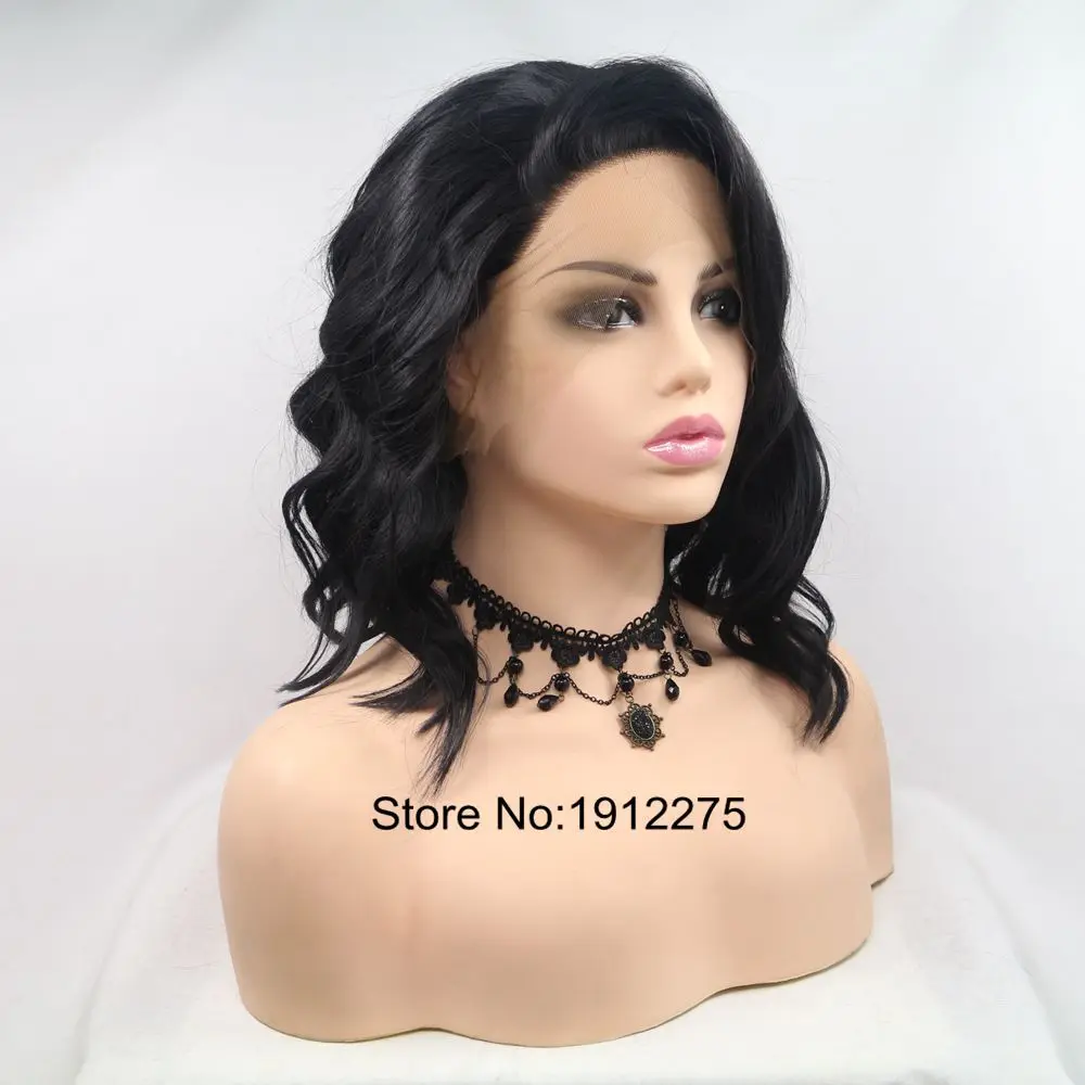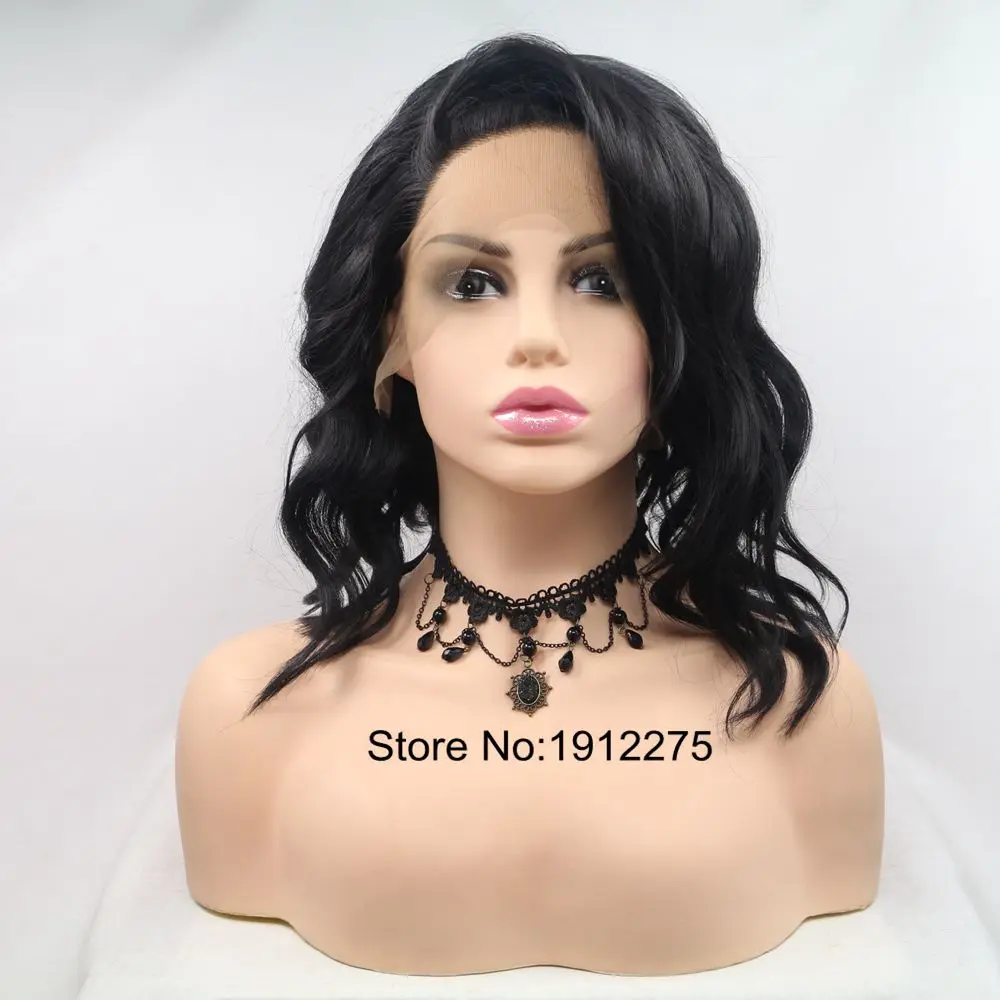Related Product for Sylvia Short Black Curly Wigs For Women Synthetic Lace Front Wig Side Part #1b Hair Natural Heat Re