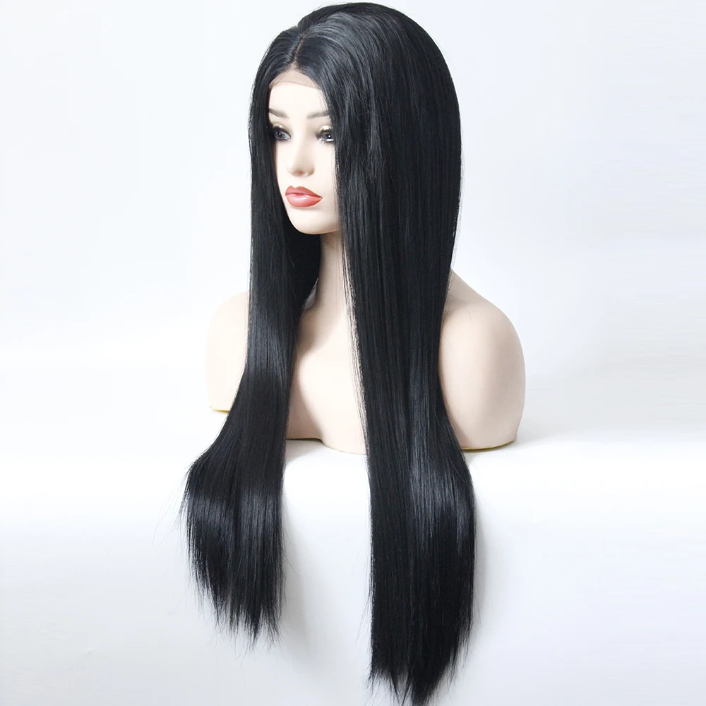 Special Price for V'NICE Long Straight Black Wig Middle Part High Temperature Fiber Brazilian Hair Synthetic Lace Fro