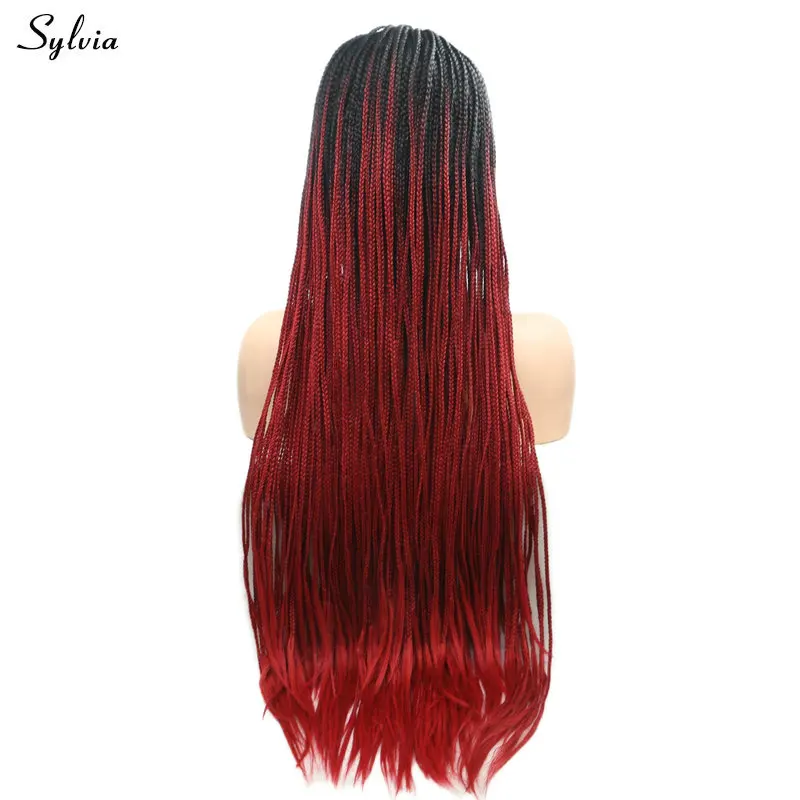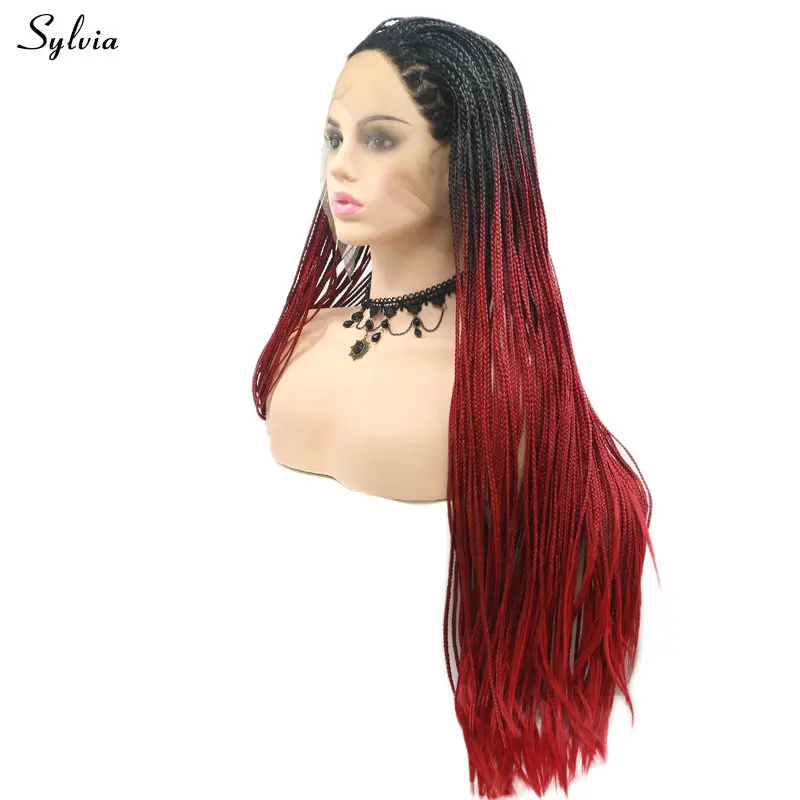 Limited Price of Sylvia Black Ombre Wine Red Braided Box Braid Wig Synthetic Lace Front Wigs Heat Resistant Fiber Ha