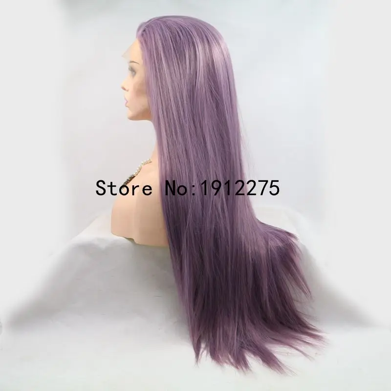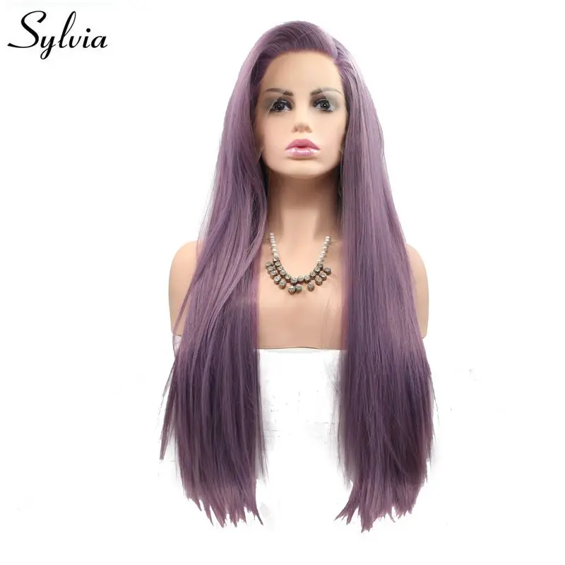 Good Price for Sylvia Long Silky Straight Hair Purple Synthetic Lace Front Wig For Women Side Part Heat Resistant