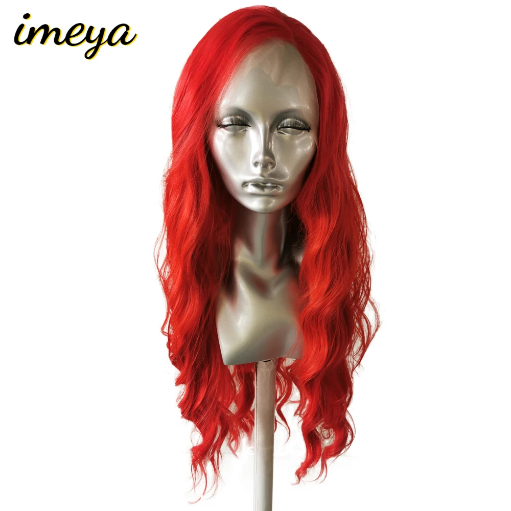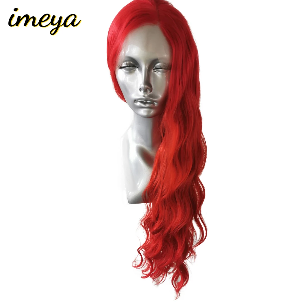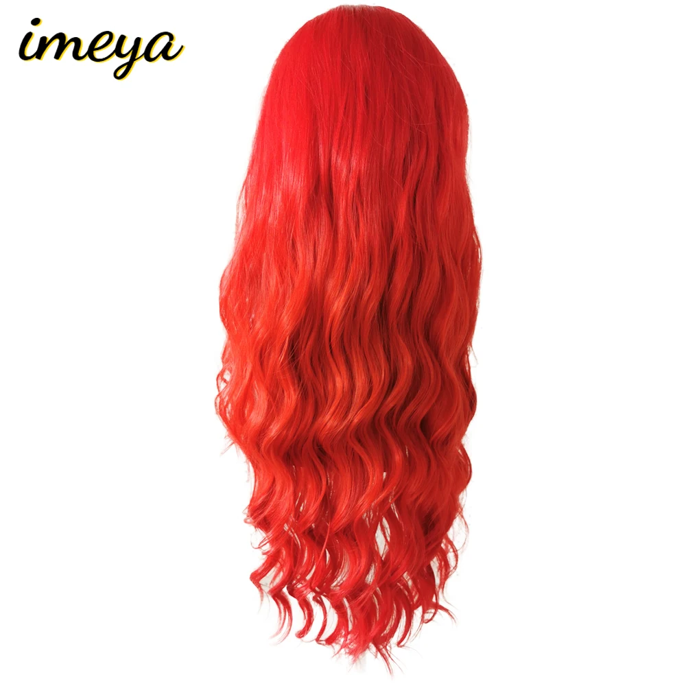 Imeya Long Wavy Synthetic Lace Front Wigs Red Color Half Hand Tied Heat Resistant Replacement Cosplay Wigs For Women