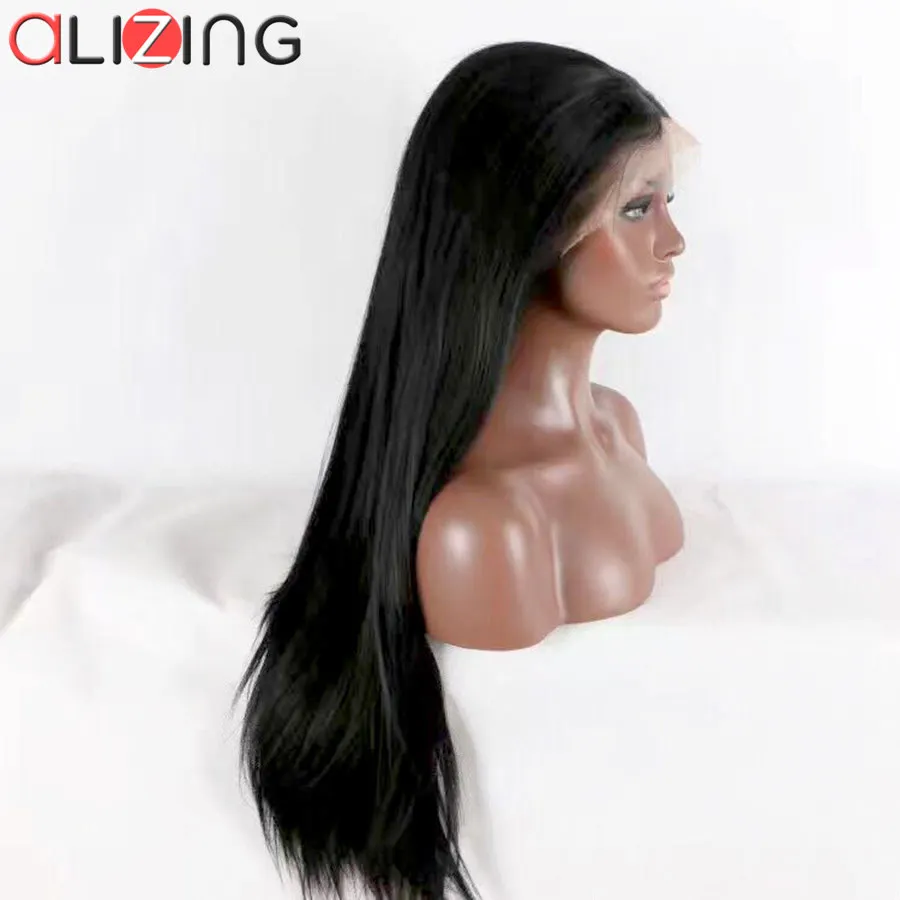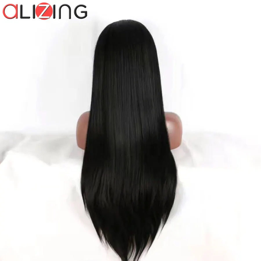 Related Product for Alizing Front Lace Wig Black Color T Part lace frontal Wig Synthetic Hair Long Straight Lace Front