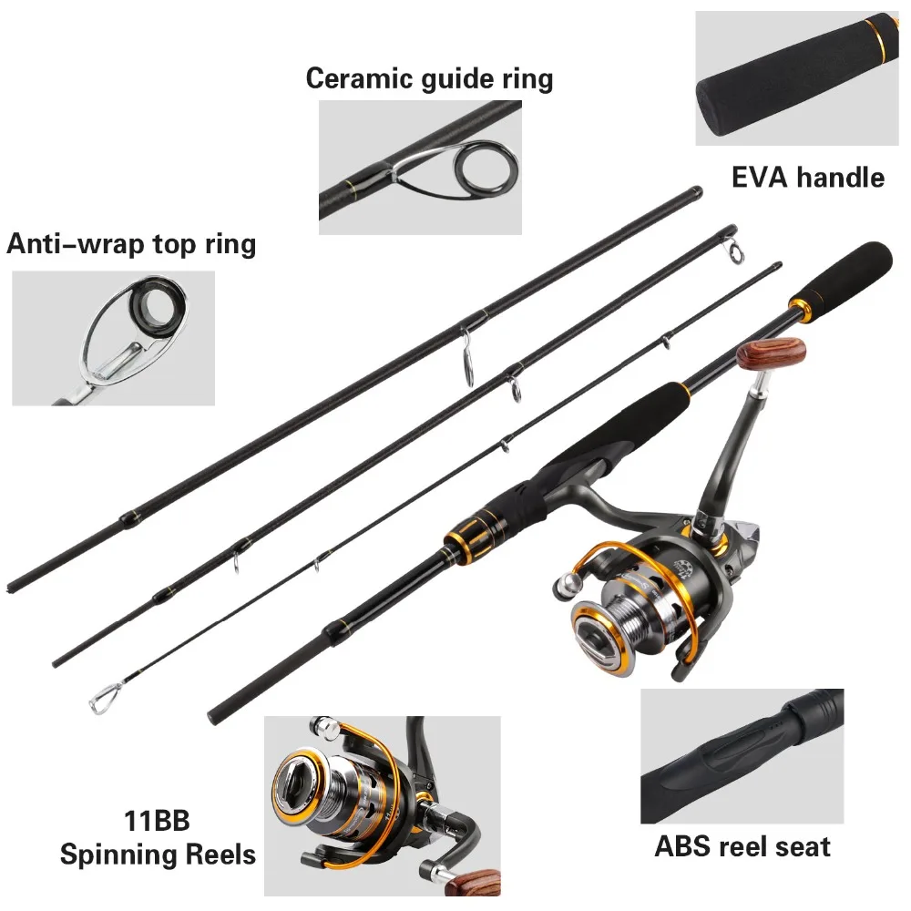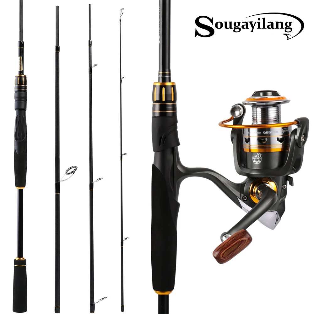 Premium Sougayilang 1.8m 2.1m Lure Fishing Rod Combo 4 Section Carbon Fiber Fishing Pole With 13+1BB Spinning Reels for Travel FishingGet 55% OFF, VALID UNTIL TOMORROW