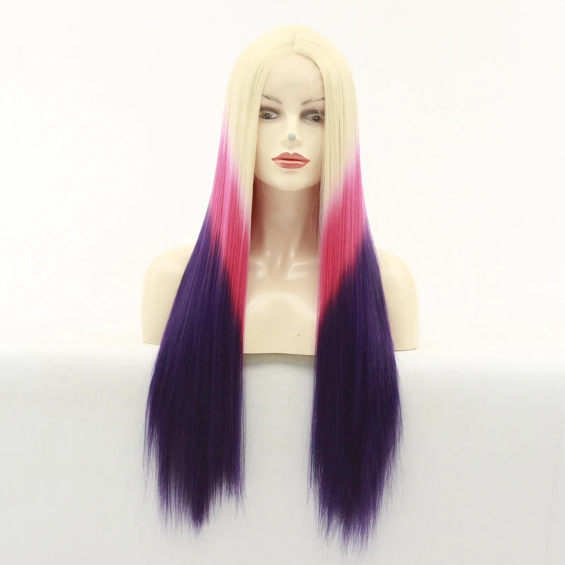 Buy red Pink Purple Colorful Wigs Three Tone Ombre Lace Front Wig Silky Straight Soft Touch Fiber Hair Right Here and Right Now Just for USD US $28.80, Price will be rise up at any time without notification and I cant guaranted that the stock is still available tommorow or next hour. So Please Save It Now!