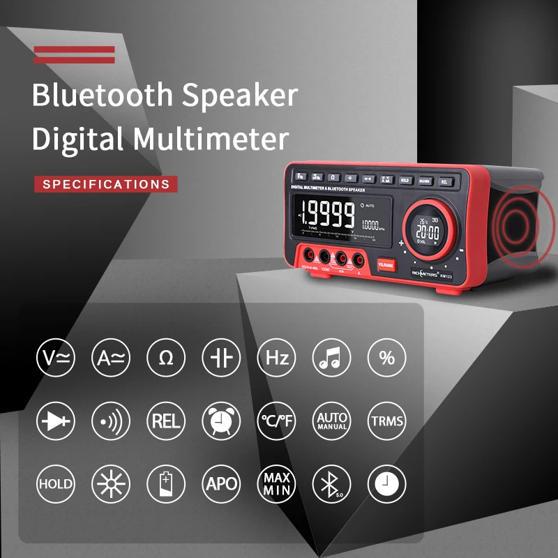 Related Product for RICHMETERS RM123 Digital Multimeter 19999 voltmeter Tester probes 1.2M Blue tooth Speaker Auto-Rang