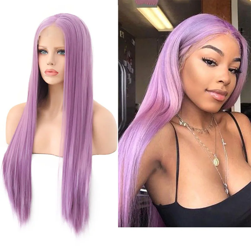 Related Product for AIMEYA Lavender Purple Synthetic Lace Front Wigs Middle Part Long Straight Wig for Women Glueless H