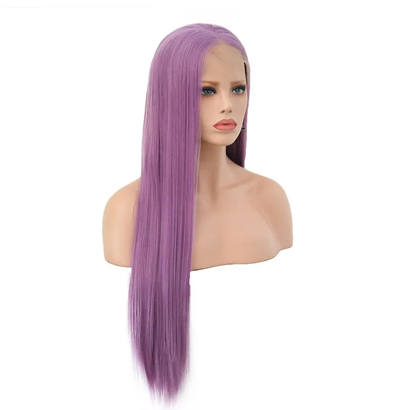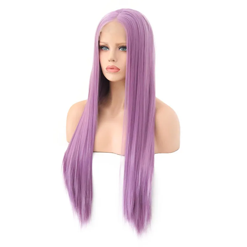.image for AIMEYA Lavender Purple Synthetic Lace Front Wigs Middle Part Long Straight Wig for Women Glueless H