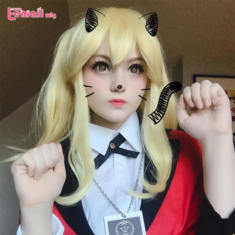 Related Product for L-email wig Kakegurui Mary Saotome Cosplay Wigs Straight Light Blonde Ponytails Cosplay Wig Heat Re