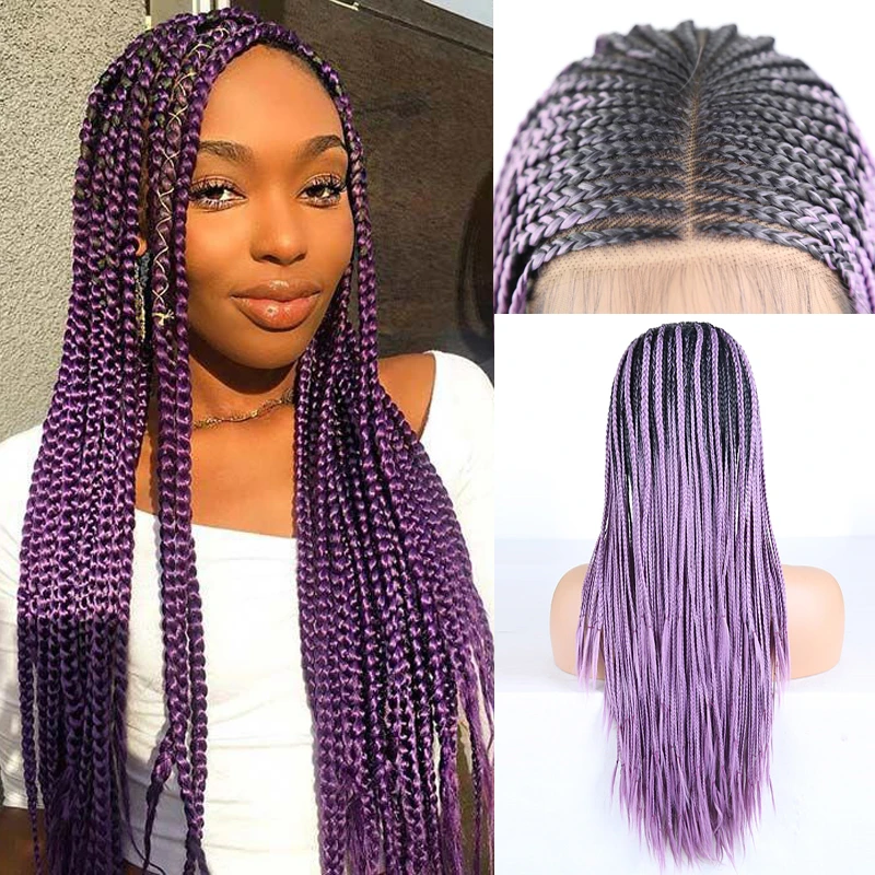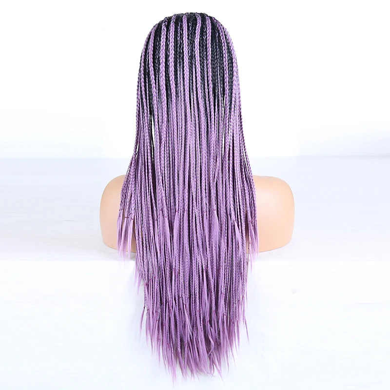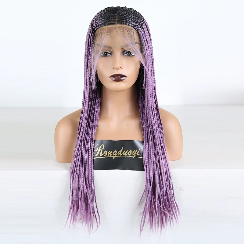 Good Price for Rongduoyi Ombre Purple Braided Box Braids Wig Long Fiber Hair Synthetic Lace Front Wigs for Women D