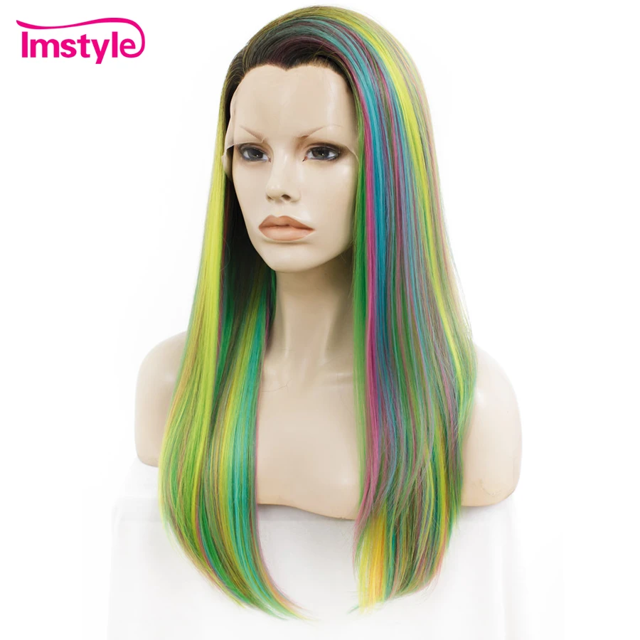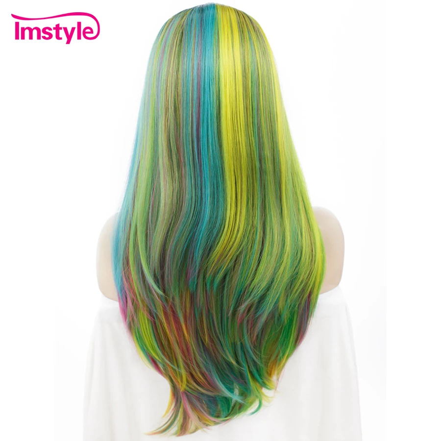 Special Price of Imstyle Straight Rainbow Green Wigs Lace Front Wigs For Women Long Hair High Temperature Fiber Synt